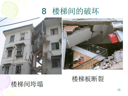 1、不同烈度時的破壞部位變化不大,破壞程度有顯著差別,房屋的層數(shù)越多、高度越高,破壞越嚴(yán)重,墻體承載能力不足產(chǎn)生的X型裂縫或單向斜裂縫。