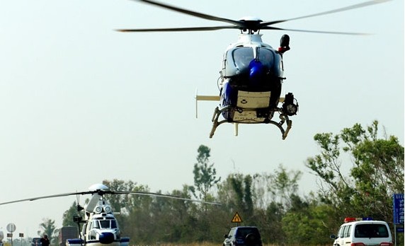 省公安廳同時派出2架警用直升機在目標區(qū)域上空執(zhí)勤,進行空中管控,負責執(zhí)行探照追蹤、高音喊話、空中警戒、航拍取證、快速用兵、緊急救援等任務(wù)。路面上,對相關(guān)路段和重點部位實施交通管制,形成海陸空全方位立體防控網(wǎng)。