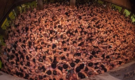 加固公司:2月16日幾近全裸參加日本裸體節(jié) 聲勢浩大引人注目,日本裸體節(jié)在岡山舉行,男子們纏著裹腰布進行慶祝。人們擠在一起,伸手爭奪被扔出的幸運棒。大約9000男子參加到這一活動之中,試圖爭奪“寶木”。