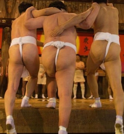 裸體節(jié)又叫“會陽節(jié)”:參加者都是男性,他們只系日本傳統(tǒng)的兜襠布,幾近全裸。每年2月的第三個星期,是舉行裸體節(jié)的日子,而星期六晚上的活動是高潮,每年的這一天都有近萬名男子趕來參加裸體爭搶“寶木”的儀式,參觀者也不計其數(shù)!皩毮尽庇6寸長、直徑3寸的杉木挖成。人們對寶木癡迷的原因要追溯到1300多年前。據(jù)傳,那時西大寺觀音院剛剛建成,一位來自奈良的高僧將一種叫“修正會”的儀式傳入此地。在這個儀式上,僧侶們把廟里的寶物用“牛玉紙”包好,放在千手觀音像的背后,供奉14天,祈禱國家安定、五谷豐登、人民富足。儀式結(jié)束后,用來包寶物的紙由住持贈給年長的信徒。得到牛玉紙的家庭一年內(nèi)果真順順當當、豐衣足食,于是,信徒們每年都來爭搶牛玉紙,會陽節(jié)的風俗由此形成。到了500年前的室町時代,易碎的牛玉紙演變成杉木制成的寶木。當時的住持忠阿上人規(guī)定,由寺院拋下兩塊寶木,男性信徒自由爭搶。