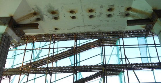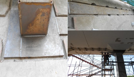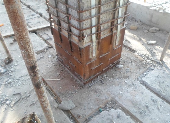 2.鋼板與混凝土柱加固連接;