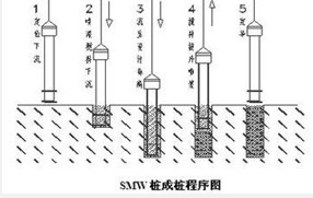 SMW工法的特點 SMW工法型鋼水泥土攪拌墻,是以多軸型鉆掘攪拌機(jī)在原位地層向一定深度進(jìn)行鉆掘,同時在鉆頭處噴出水泥系強(qiáng)化劑而與地基土反復(fù)混合攪拌,在各施工單元之間則采取重疊搭接施工,然后在水泥土混合體未結(jié)硬前插入H 型鋼或鋼板作為其應(yīng)力補強(qiáng)材,至水泥結(jié)硬,便形成一道具有一定強(qiáng)度和剛度的、連續(xù)完整的、無接縫的地下墻體。